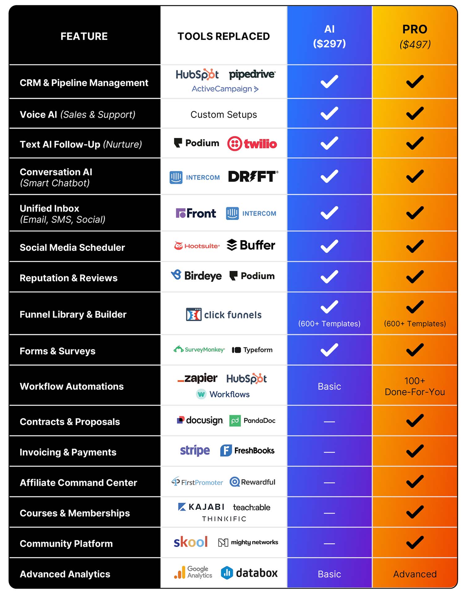 Choose PRO if you are ready to replace "Tech Bloat" with a Scaleable Profit Machine. This tier is for the founder who is tired of burning $3,000+ a month on disconnected tools but also needs the infrastructure to grow.
