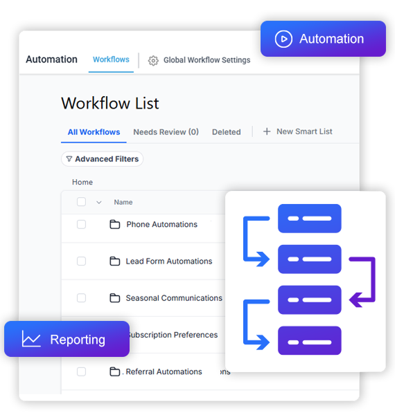 Most CRMs give you a blank page. We give you the playbook. PRO comes pre-loaded with 100+ Battle Tested Automation Workflows that we use to run 7 figure companies. From "New Client Onboarding" to "Failed Payment Recovery" and "Client Reactivation," these aren't just features.
