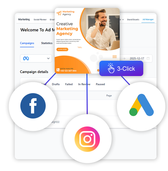 Stop burning money on confusing ad managers. Our system allows you to deploy professional Paid Ads across Facebook, Instagram, and Google in under 60 seconds - no agency or tech skills required.