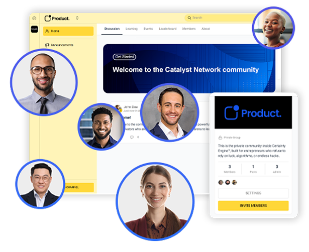 Upgrade to Certainty Engine Pro™ ($497/mo) when you are ready to build a "Profit Machine" with private communities, courses, and your own affiliate army.