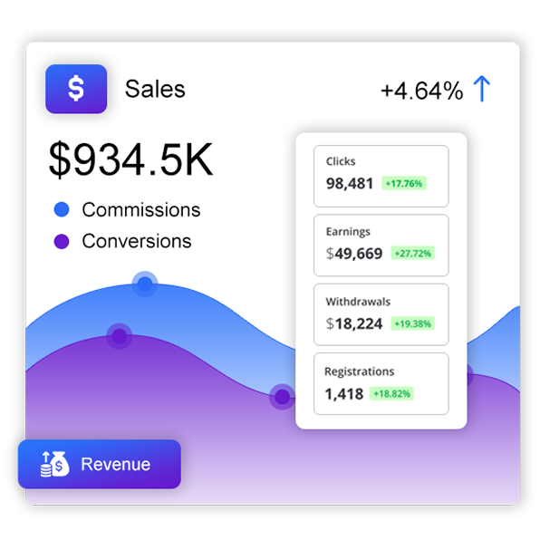 Our built-in Affiliate Management System replaces expensive external tools and lets you generate custom links for partners, track their clicks, calculate commissions, and pay them out automatically.