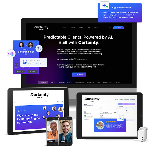 Certainty Engine™ is different. It’s built around a simple idea: Use AI to get clients predictably first, then use systems to manage and monetize them properly.