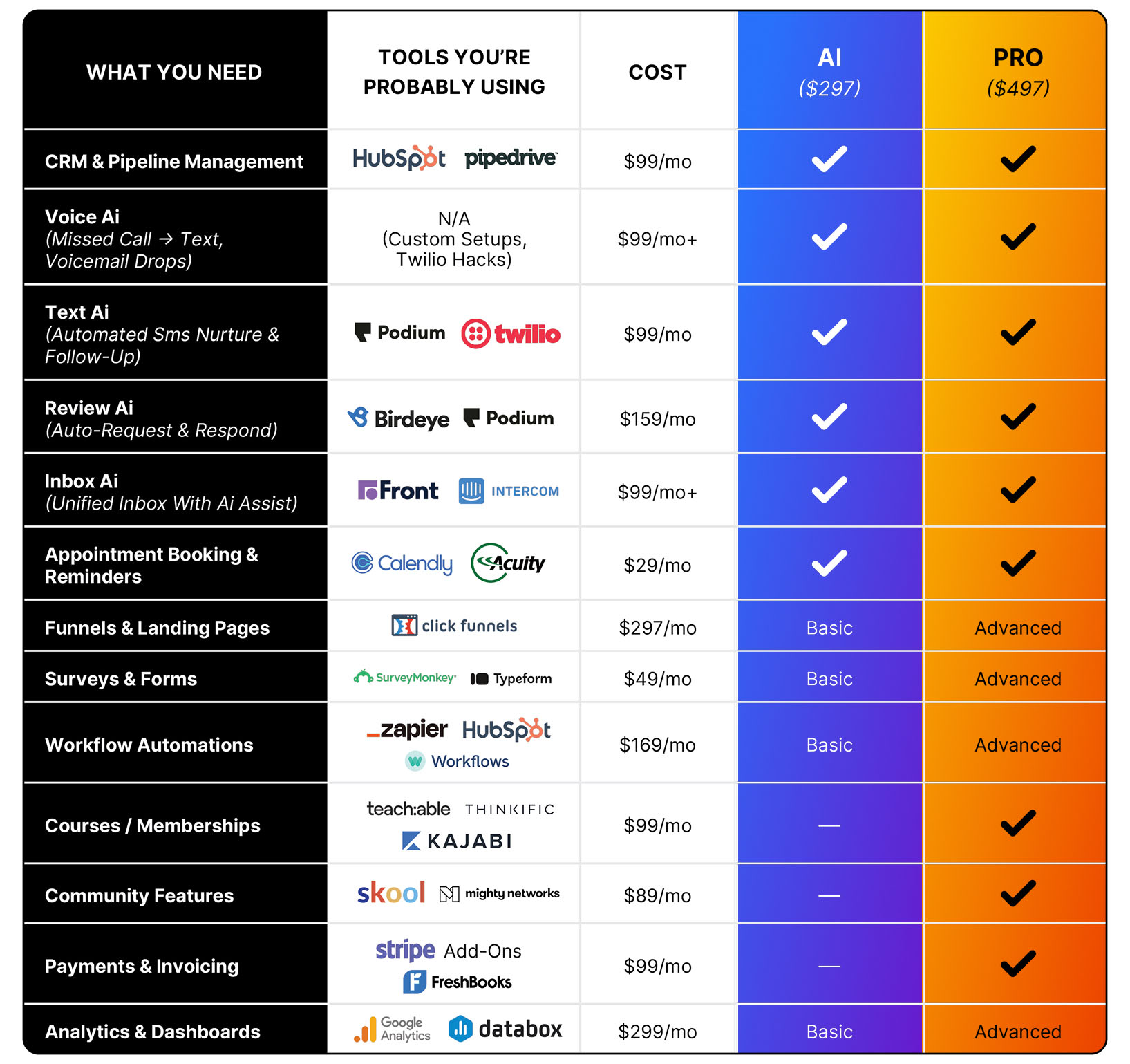 Upgrade to Pro ($497) when you’re ready for memberships, courses, communities, and advanced automations.