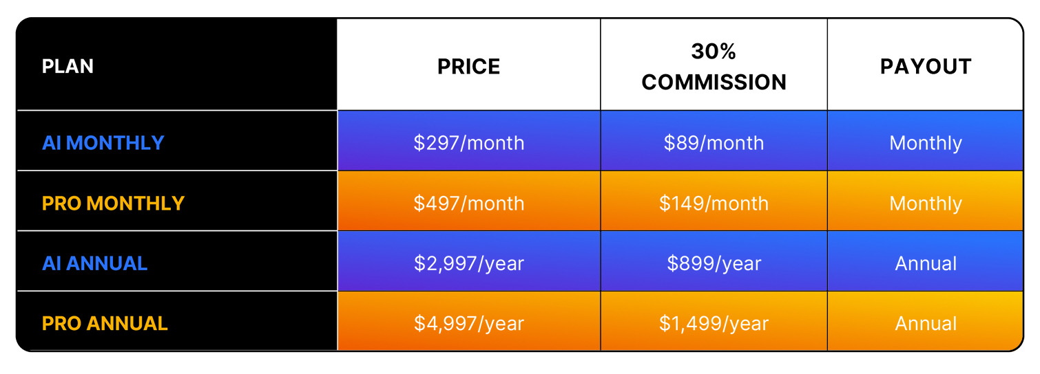 You’re offering business owners relief from overwhelm, clarity in their operations, and a system that finally works while earning recurring commissions for their first 12 months.